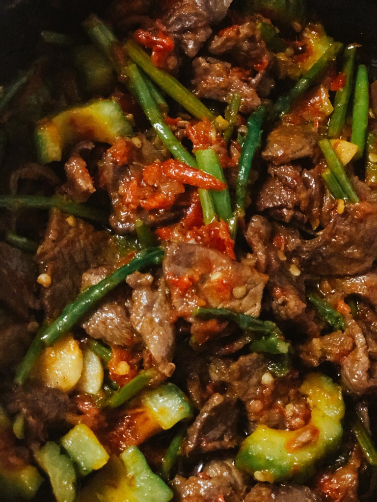 Add in 300gms of beef 🥩 suitable for stir fry, and add in seasonings 🧂 sea salt, 2tsb oyster sauce, 1 tbsp light soy sauce, 1tsb Apple cider vinegar, 1tbsp brown sugar and beef broth (non MSG) to taste. Simmer until done. Enjoy ‼️